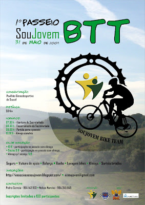 No próximo dia 31 de Maio, a Soujovem Bike Team organiza o 1.º Passeio de BTT Soujovem. Esta iniciativa consiste num passeio de 50 km pelos trilhos de Sousel e prolonga-se num almoço convívio. Traz a tua “bike", vem participar e desfrutar das maravilhosas paisagens alentejanas.