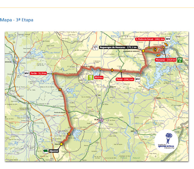 Aljustrel será palco de partida para a terceira etapa, no sábado, dia 11. A prova começa às 11h30 largando o pelotão do Parque de Feiras e Exposições. As metas volante estarão instaladas em Torrão, Portel e São Pedro do Corval. A subida a Monsaraz, a poucos quilómetros da chegada, - prémio de montanha de 3ª categoria, poderá começar a ajudar a definir a ordem de chegada dos corredores à Praça da Liberdade em Reguengos de Monsaraz.