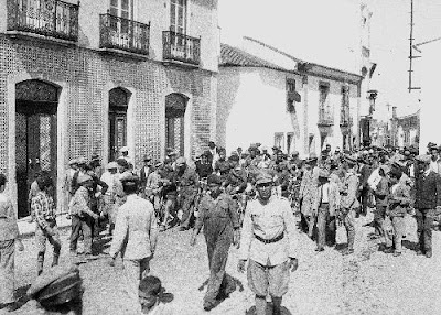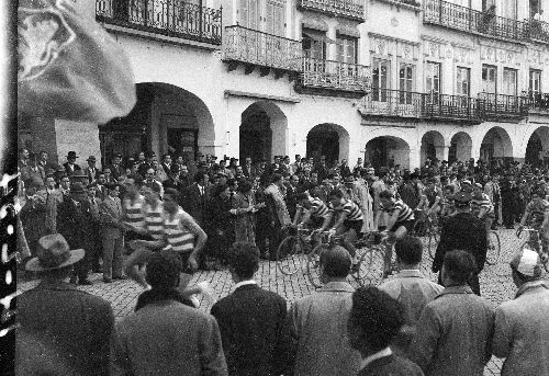 Final da etapa da 1ª Volta a Portugal em Bicicleta, 6 de Maio de 1927. A meta estava situada a meio da Rua de Machede, junto à sede do Lusitano. Participou um atleta do Lusitano nesta volta.
